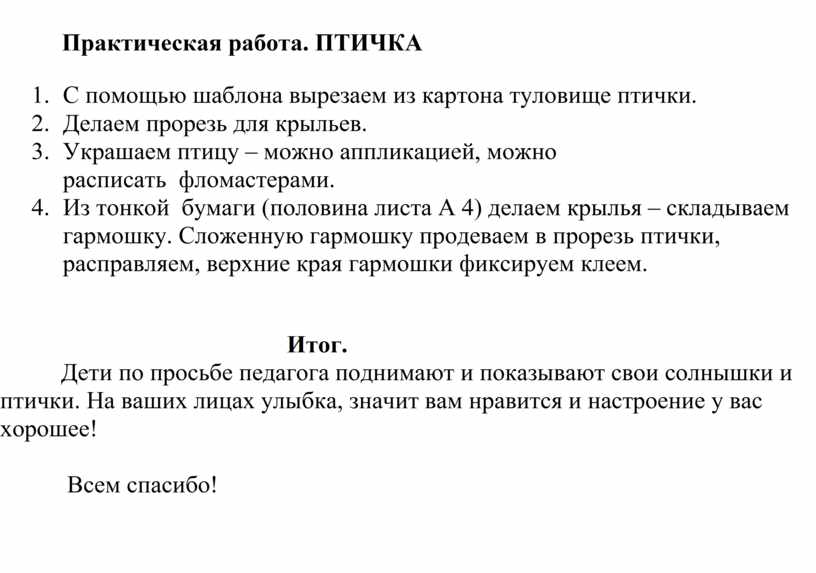 Практическая работа. ПТИЧКА