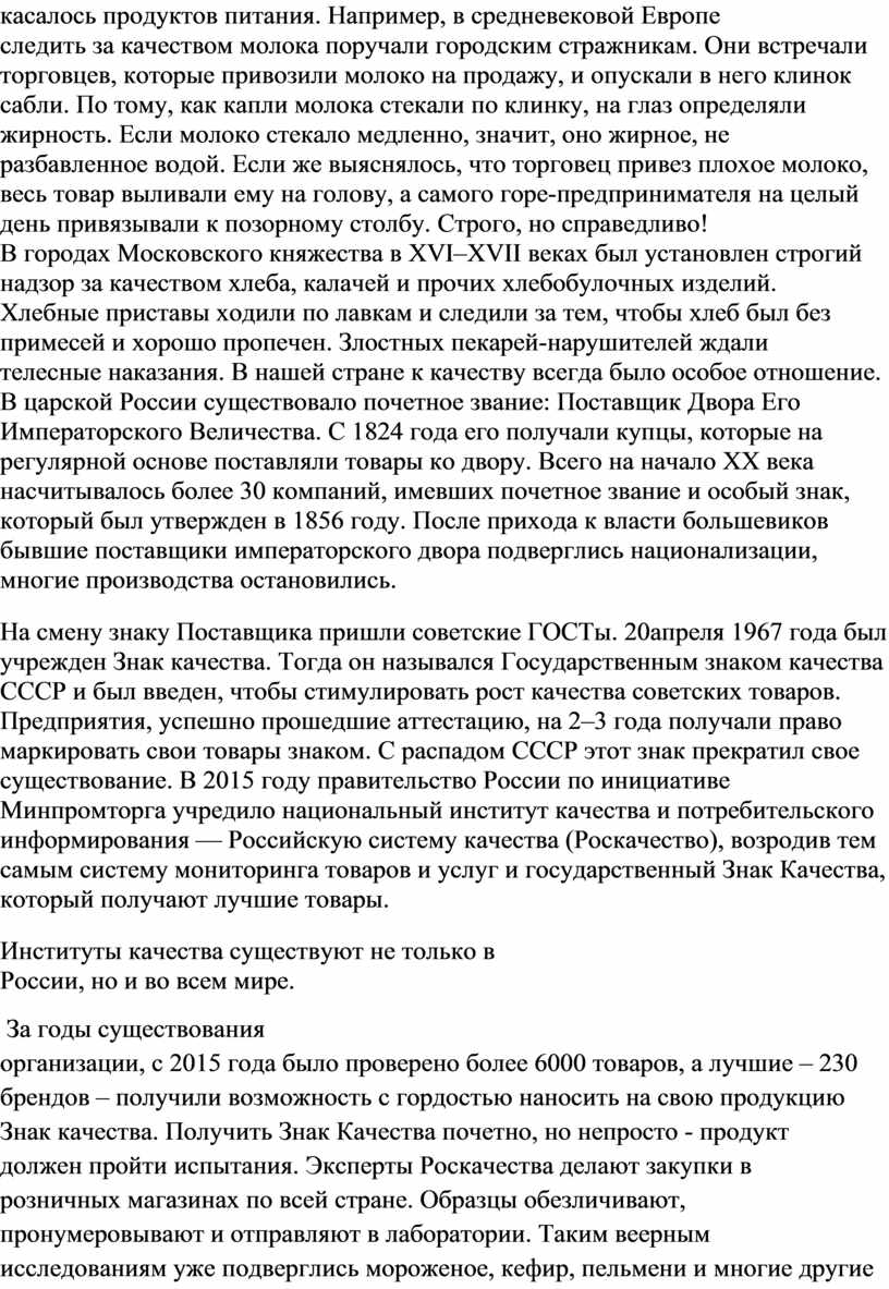 Цель занятия: Сформировать у учащихся ответственное отношение к качеству жизни; популяризировать российскую систему качества; познакомить с особенностями Советского и российского знака качества.