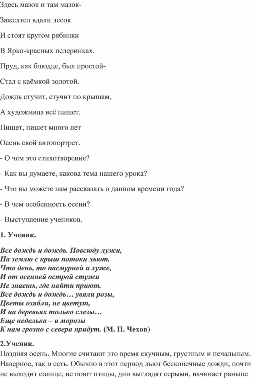 - Сегодня мы познакомимся с творчеством выдающихся живописцев, которые писали прекрасные картины с осенними пейзажами в дождливый день.