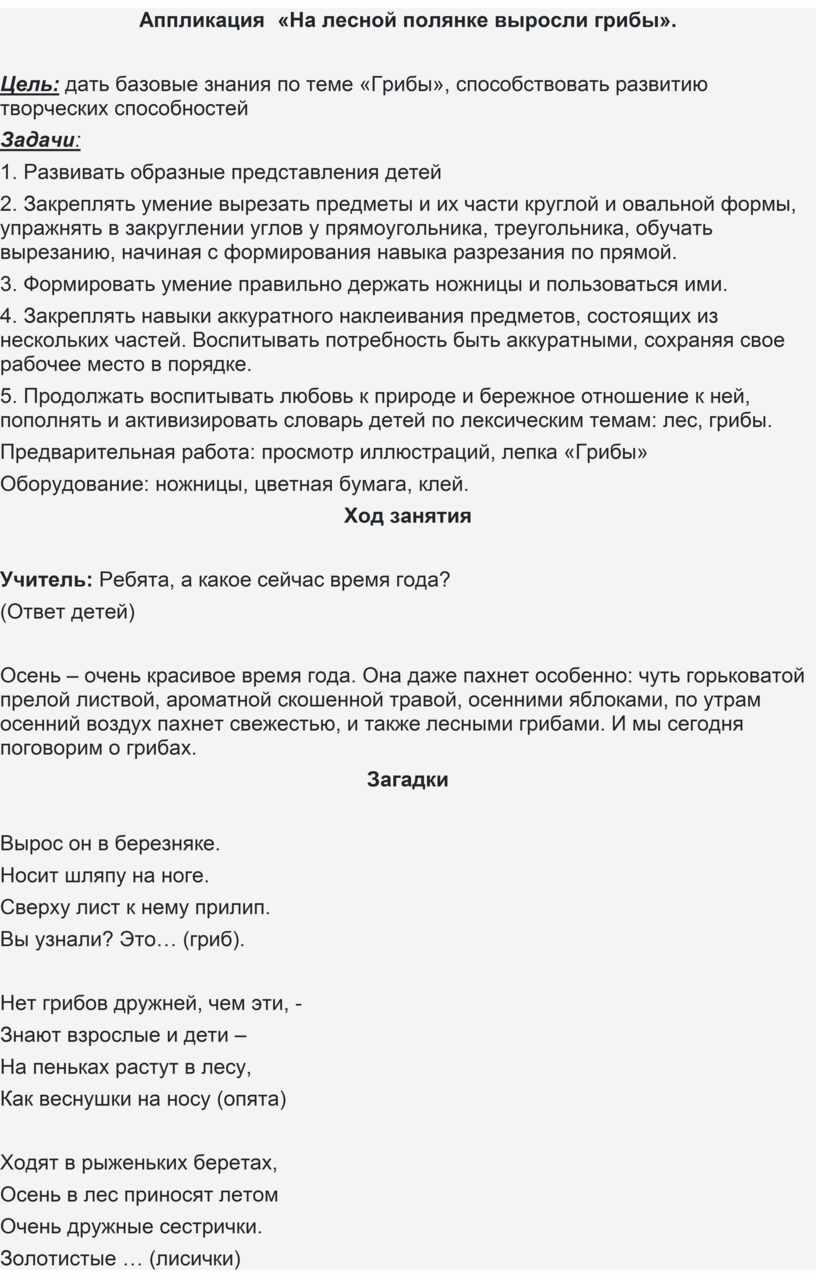Учитель:Ребята, кто уже закончил вырезать – разложите полученные фигуры на листе так, чтобы получились грибы. А теперь можем наклеивать.