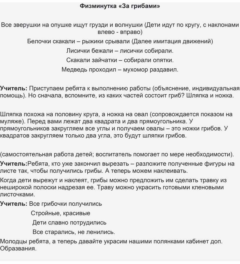 Учитель: Приступаем ребята к выполнению работы (объяснение, индивидуальная помощь). Но сначала, вспомните, из каких частей состоит гриб? Шляпка и ножка.