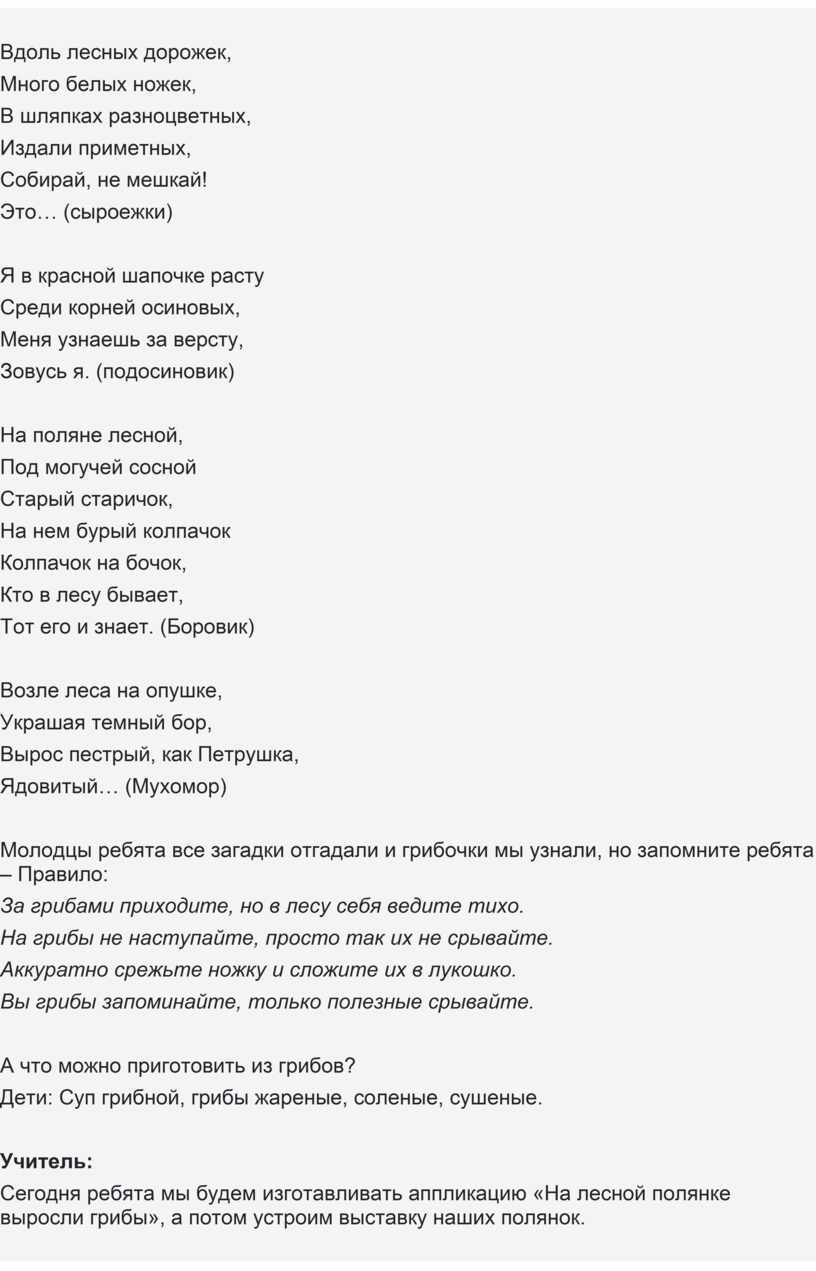 Цель: дать базовые знания по теме «Грибы», способствовать развитию творческих способностей