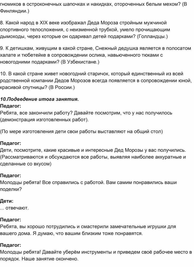Дети, посмотрите, какие красивые и интересные Дед Морозы у вас получились. (Рассматриваются и обсуждаются все работы, выявляя наиболее аккуратные и сделанные со вкусом)