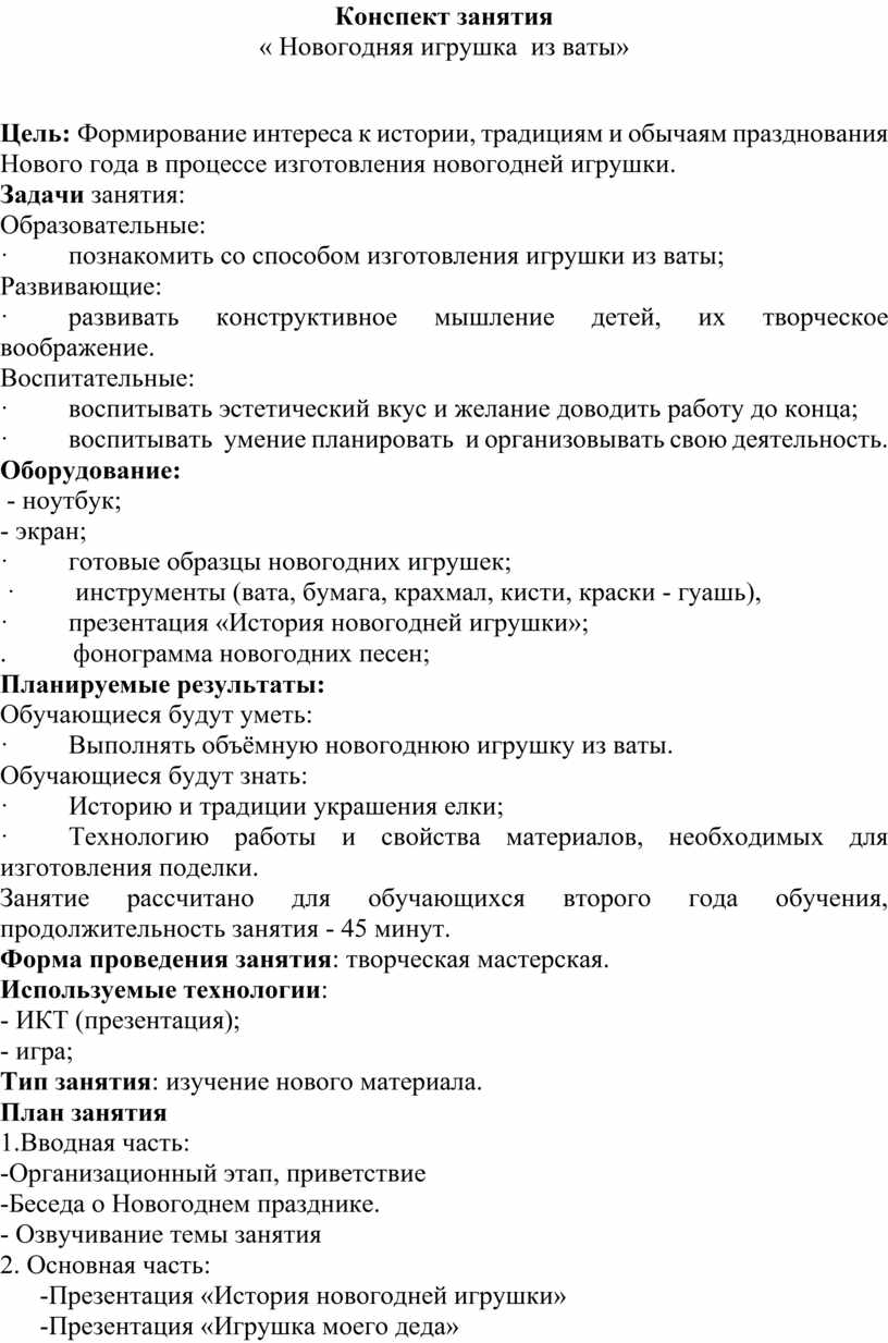 · Выполнять объёмную новогоднюю игрушку из ваты.