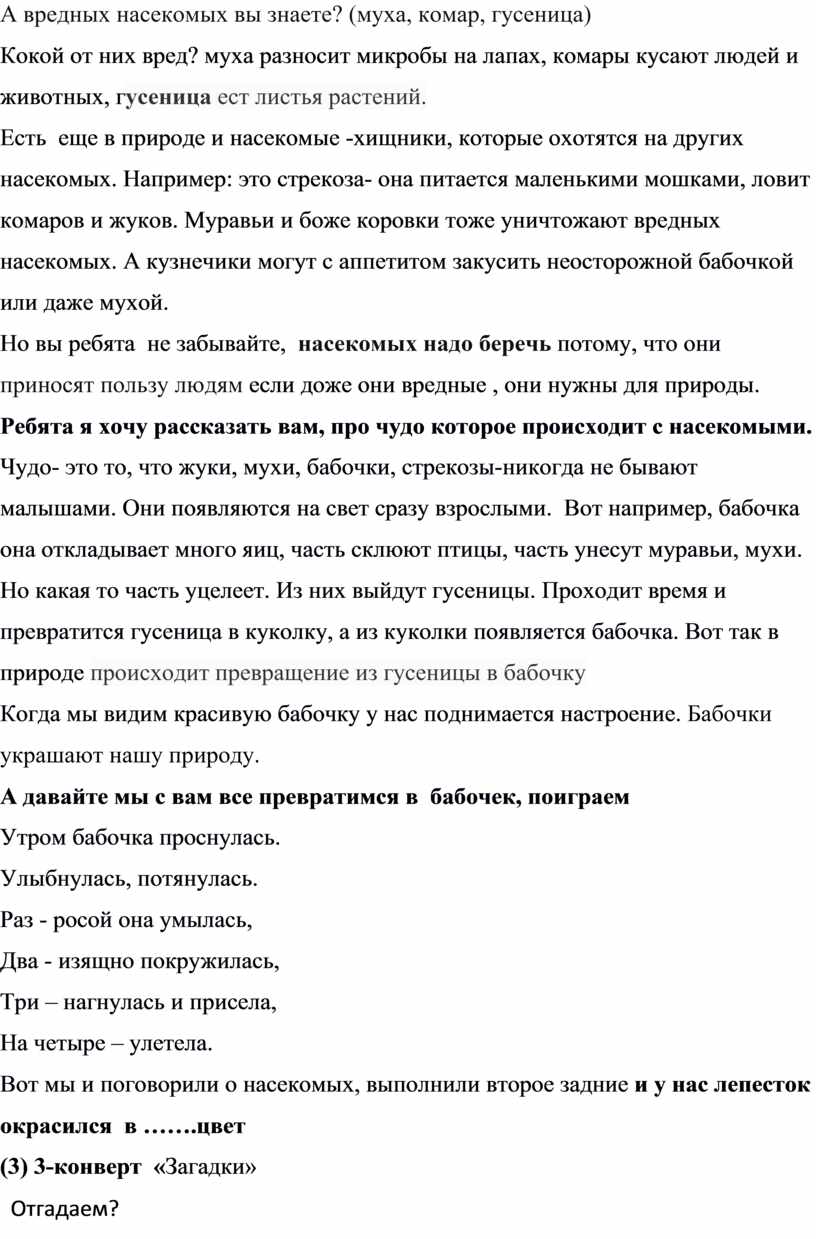 Вот мы и поговорили о насекомых, выполнили второе задние и у нас лепесток окрасился в …….цвет
