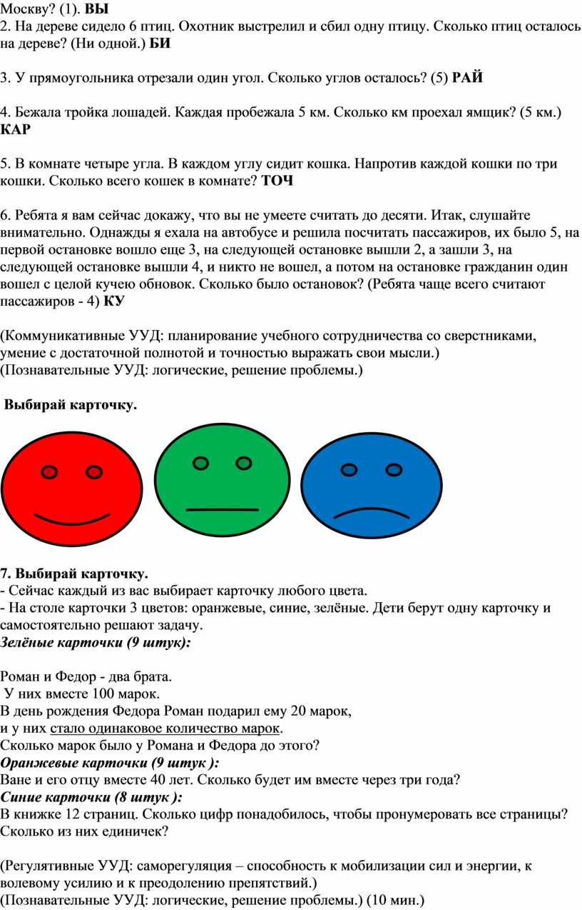 (Познавательные УУД: логические, решение проблемы.)
