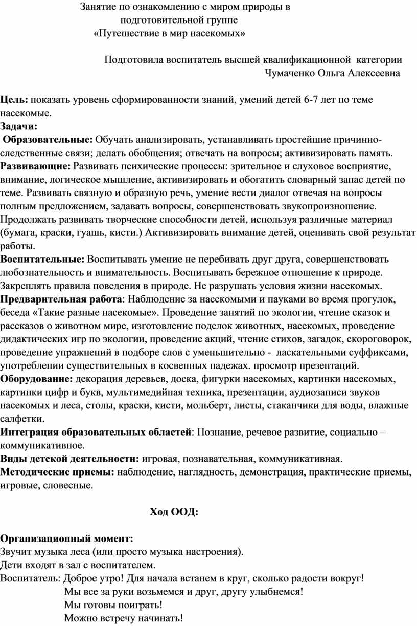 Воспитатель: Я очень рада, что вы ребята понимаете, что насекомые, это часть природы, а природу надо беречь.
