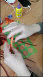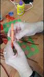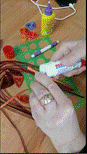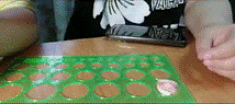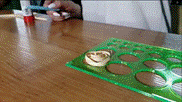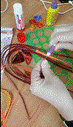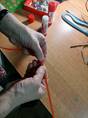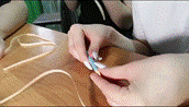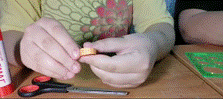 д) при помощи пинцета распущенный круг достаём из диаметральной линейки и фиксируем конец полоски.