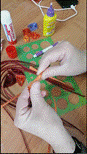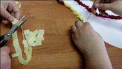 г) распускаем скрученные полоски при помощи диаметральной линейки (диаметр круга 32 мм.);