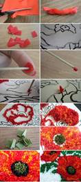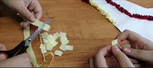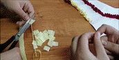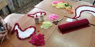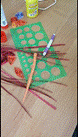-для туловища используются квадраты гофрированной, флористической бумаги размером 1 см x 1 см: темно-коричневого цвета, светло - коричневого, розового, оранжевого, тёмно – зелёного цветов.