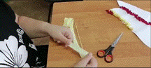 а) отбираются полоски шириной 0,5 см розового, оранжевого, красного цветов;