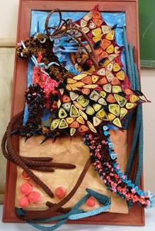 3-4 занятия - изготовление гребня, хвоста, усов, глаза, зубов, когтей и крыльев дракона в технике квиллинг.