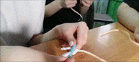 б) скручиваем их и распускаем при помощи диаметральной линейки диаметром 35 мм;