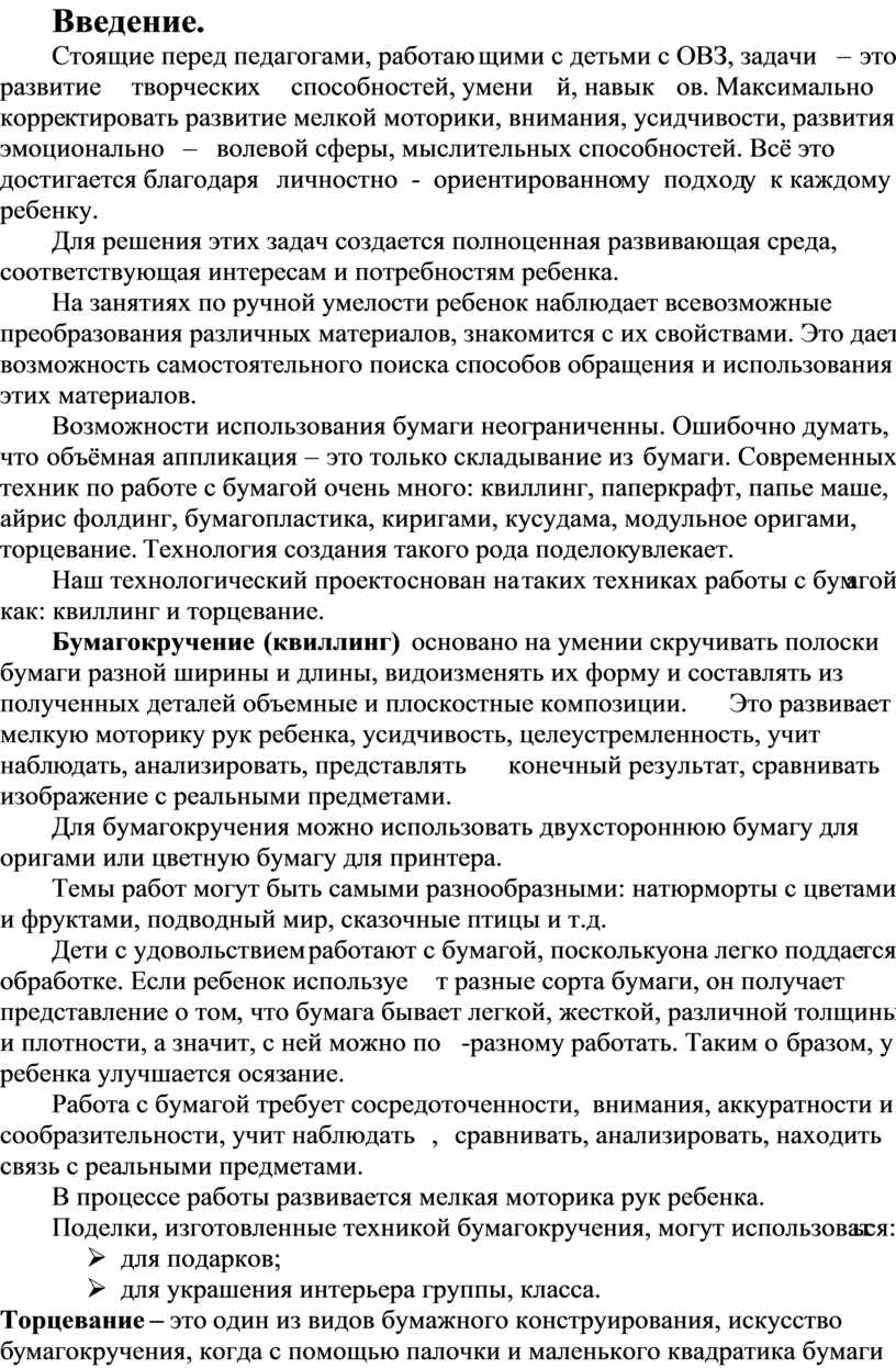 «квиллинг» и плоскостного «торцевания»;