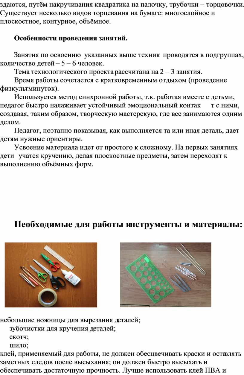 -фотографии основных материалов и инструментов;