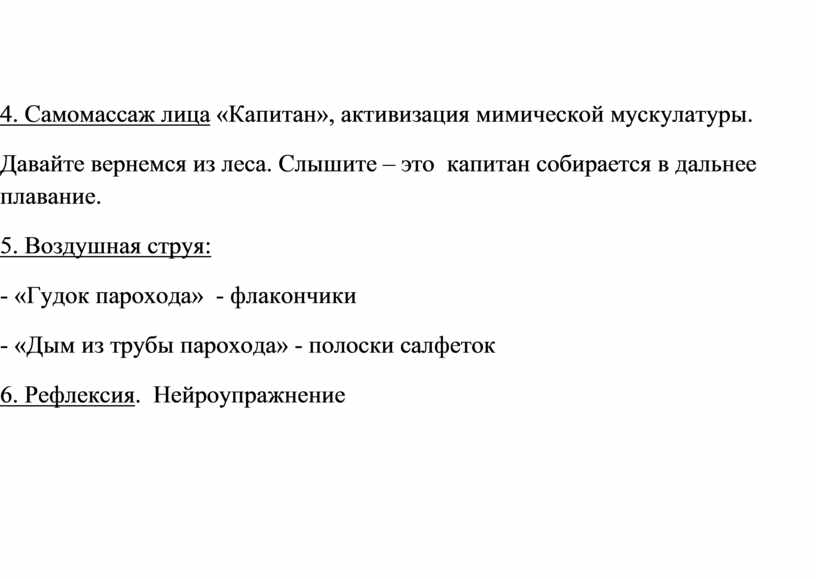 4. Самомассаж лица «Капитан», активизация мимической мускулатуры.