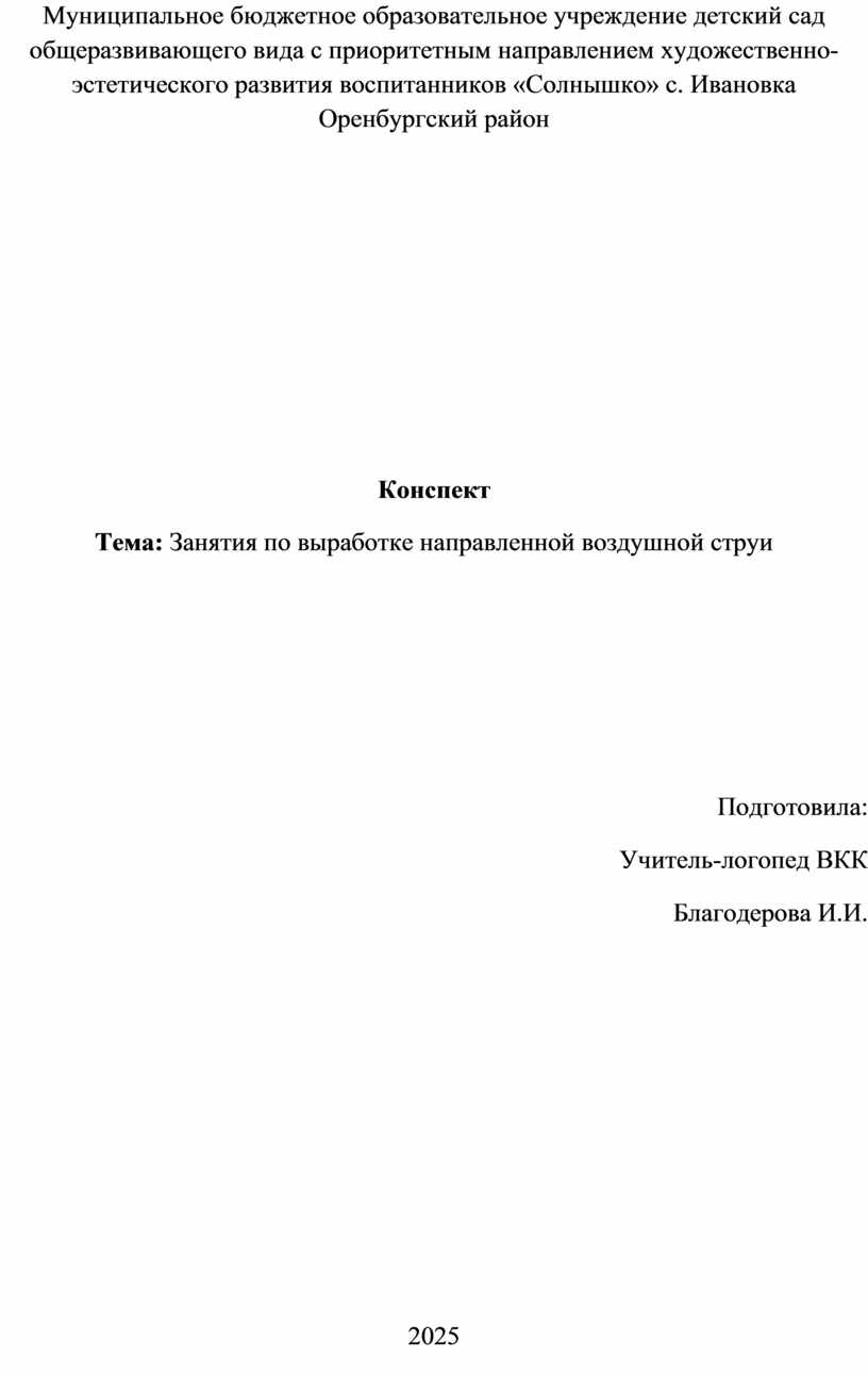 Муниципальное бюджетное образовательное учреждение детский сад общеразвивающего вида с приоритетным направлением художественно-эстетического развития воспитанников «Солнышко» с. Ивановка Оренбургский район