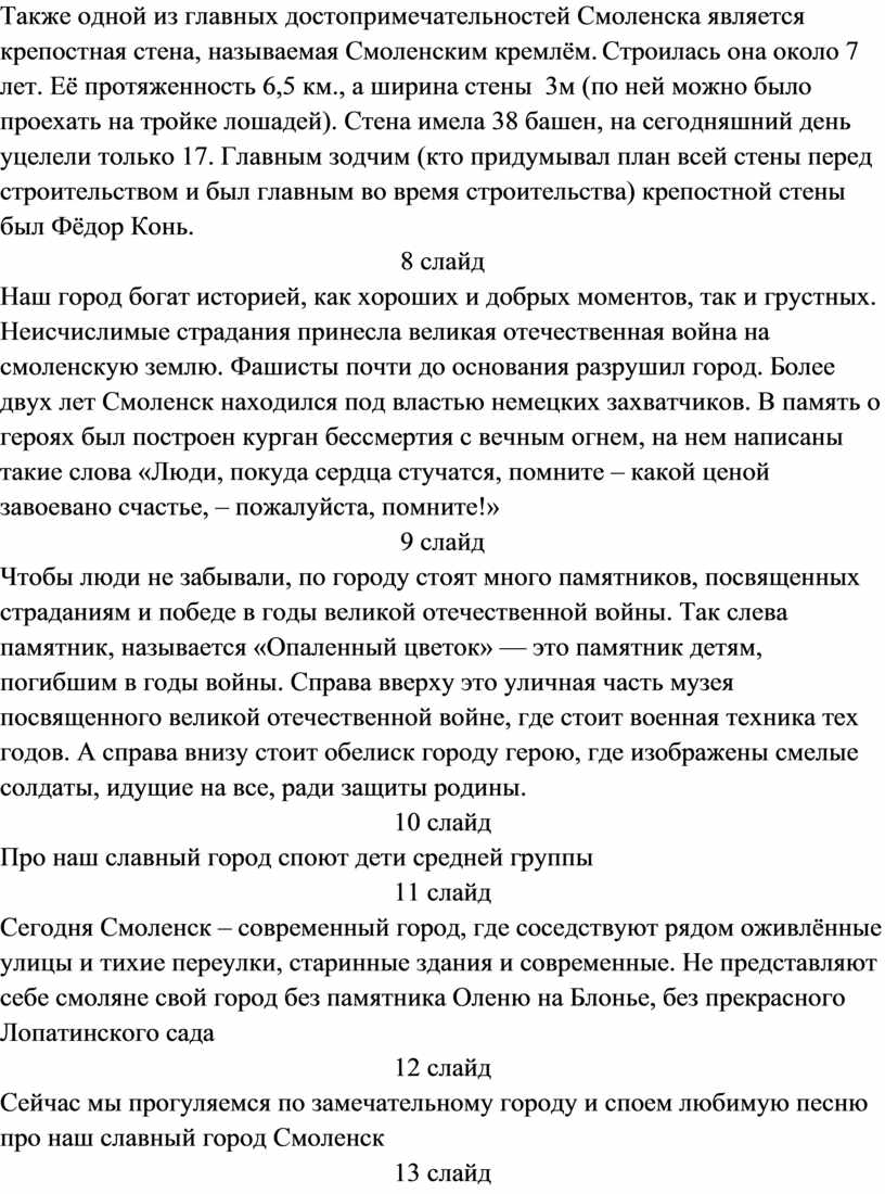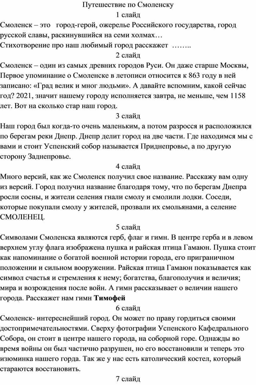 Смоленск – это город-герой, ожерелье Российского государства, город русской славы, раскинувшийся на семи холмах…