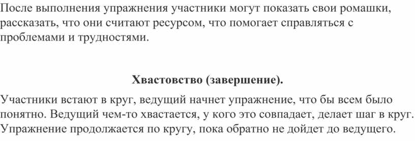После выполнения упражнения участники могут показать свои ромашки, рассказать, что они считают ресурсом, что помогает справляться с проблемами и трудностями.