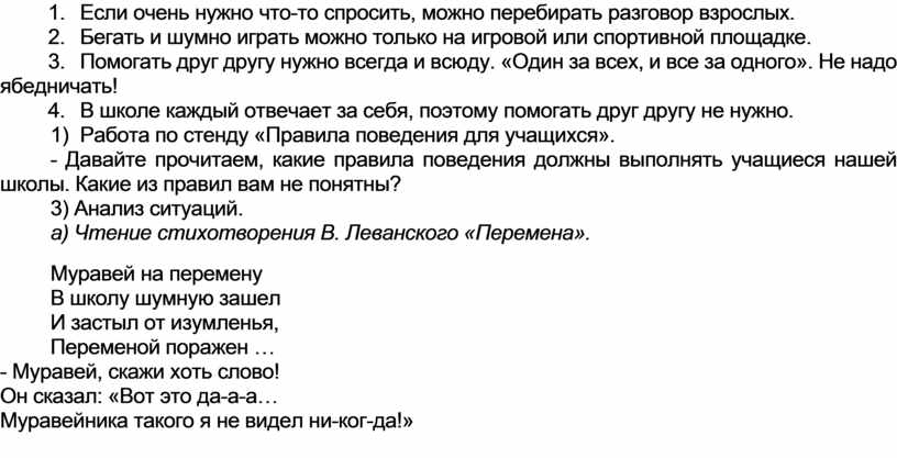 - Давайте прочитаем, какие правила поведения должны выполнять учащиеся нашей школы. Какие из правил вам не понятны?