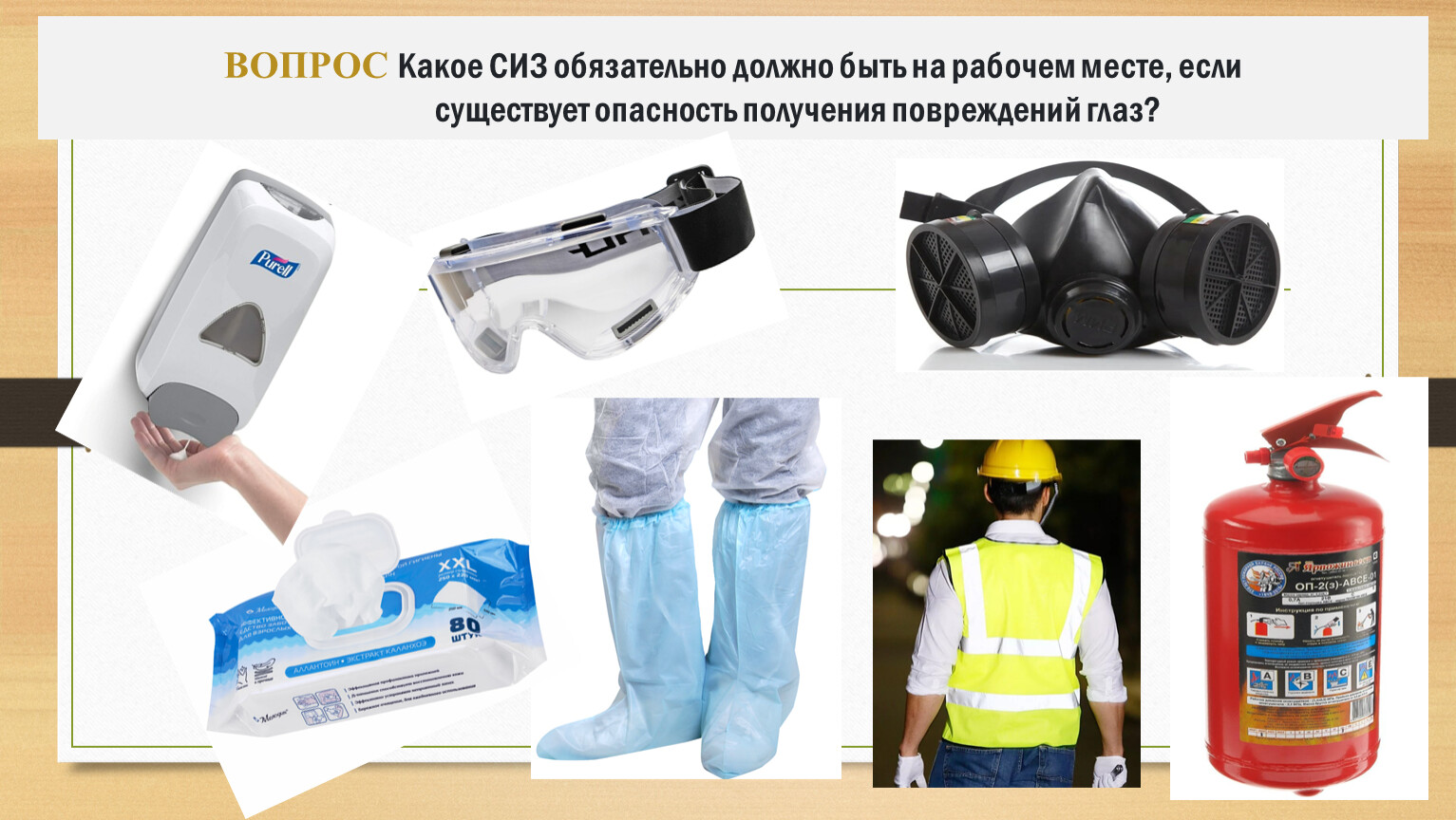ВОПРОС Какое СИЗ обязательно должно быть на рабочем месте, если существует опасность получения повреждений глаз?