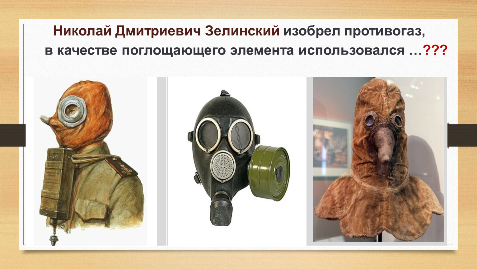 Николай Дмитриевич Зелинский изобрел противогаз, в качестве поглощающего элемента использовался …???