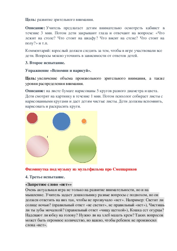 нарисованными кругами и дает детям чистые листы. Дети должны вспомнить,