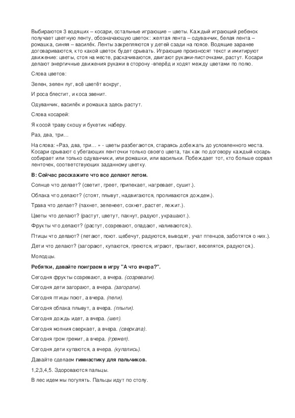 Конспект занятия «Лето»