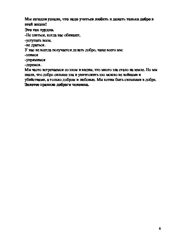 5Мы сегодня узнали, что надо учиться любить и делать только добро в