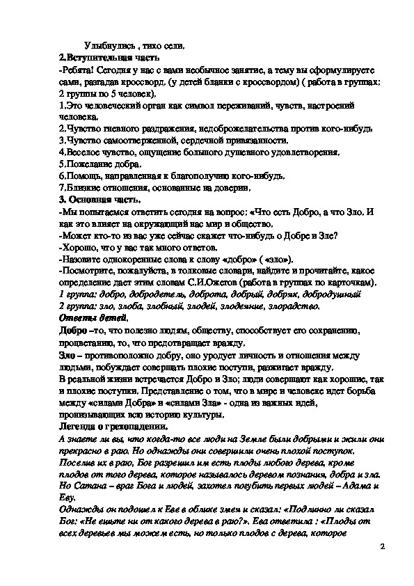 разделить в представлении учащихся понятия «добро» и «зло»;