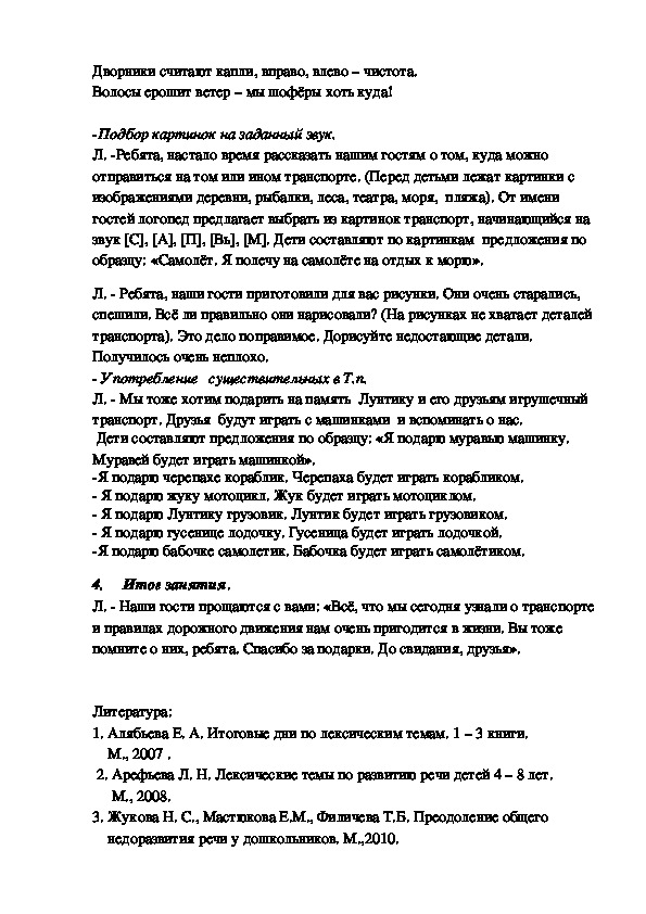Л. Ребята, мы с вами уже много знаем о дороге и транспорте. В движении по