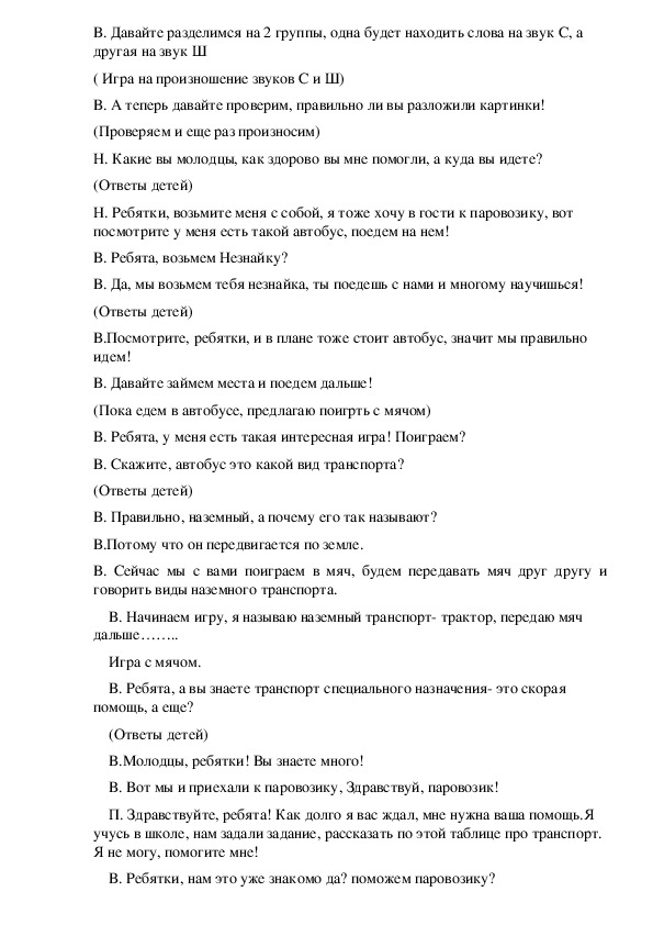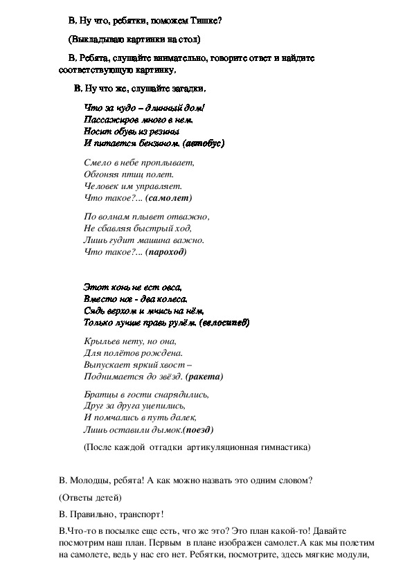 В. Ребята,как вы думаете, каким бывает транспорт? (Наземный, воздушный,