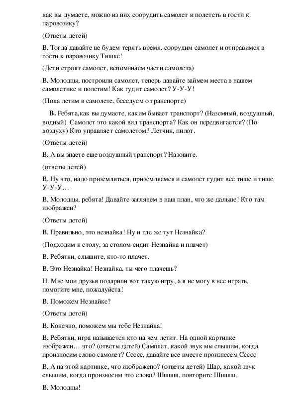 В. Молодцы, построили самолет, теперь давайте займем места в нашем