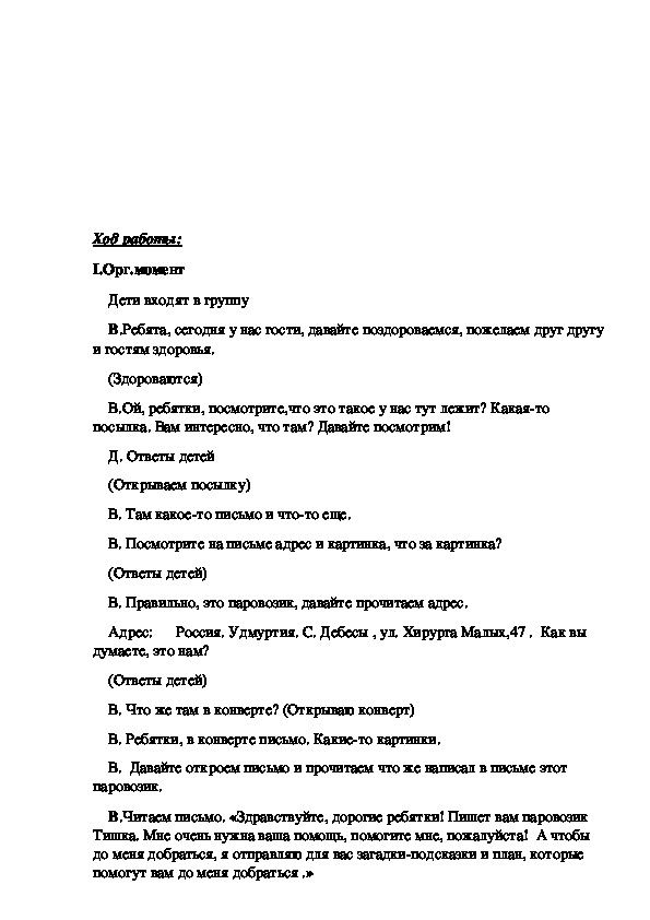 В. Правильно, это паровозик, давайте прочитаем адрес.
