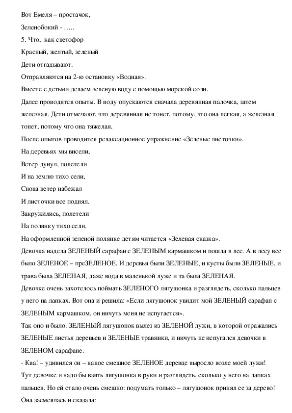 Педагог: Дети, мы сегодня отправимся с вами в зеленую страну. В этой стране будет все