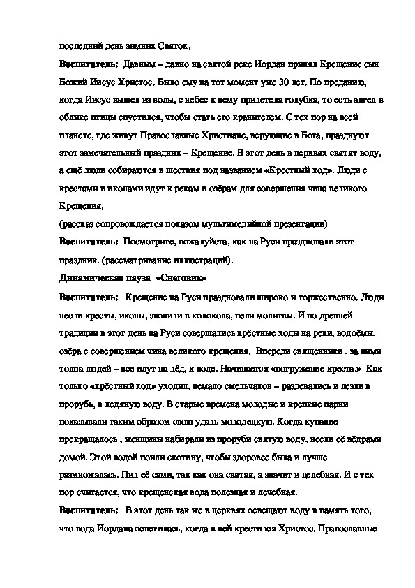 Воспитатель: Давным – давно на святой реке Иордан принял Крещение сын