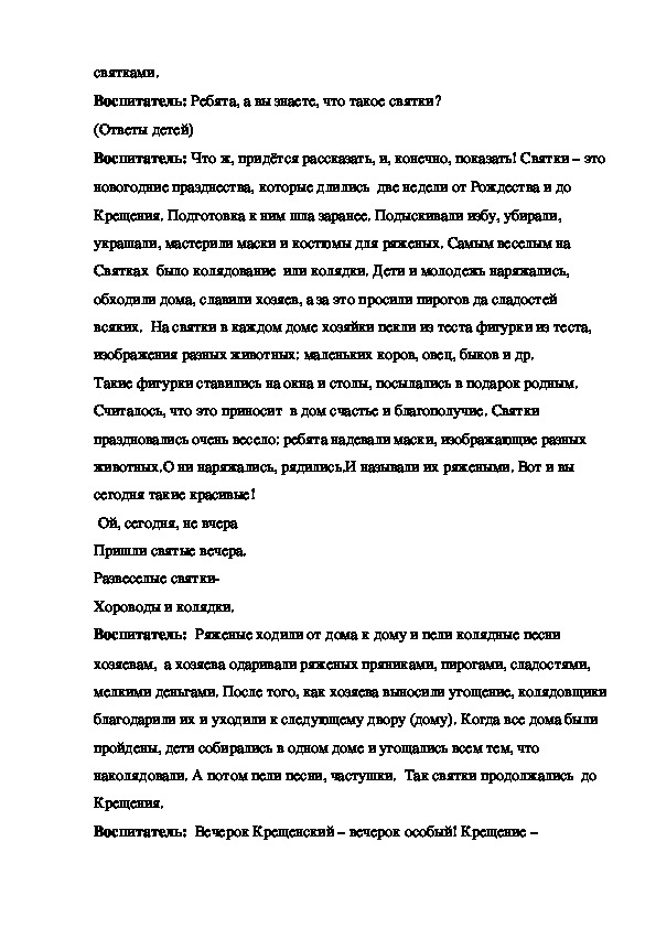 Воспитатель: Ребята, а вы знаете, что такое святки?