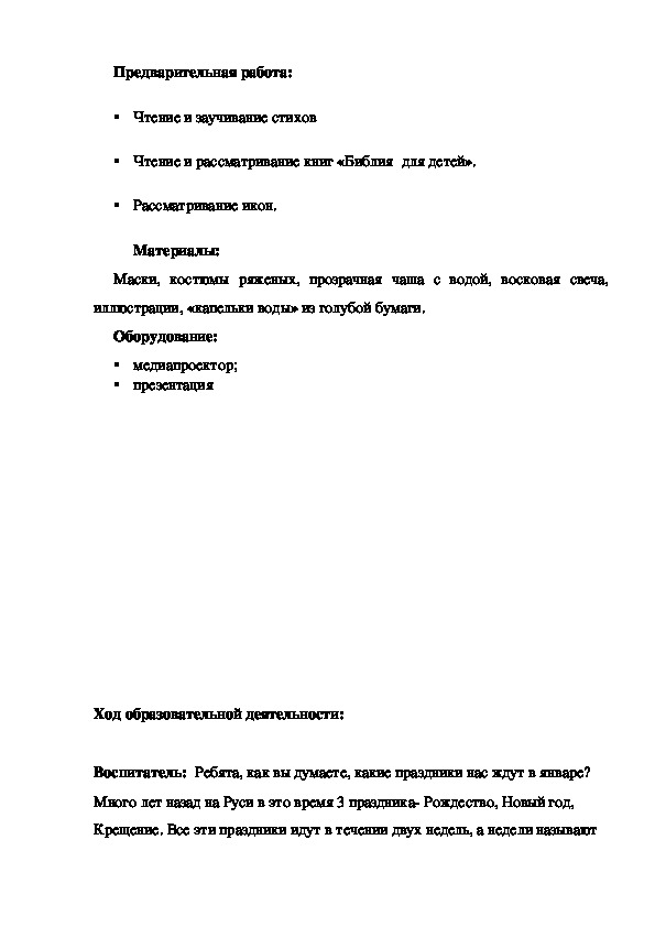 Воспитатель: Вечерок Крещенский – вечерок особый! Крещение –последний день зимних Святок.