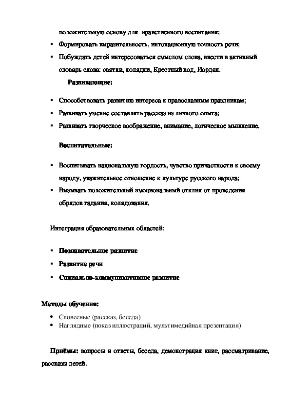 Формировать заинтересованное, уважительное отношение к обычаям и духовной культуре русского народа, создавая эмоционально –положительную основу для нравственного воспитания;