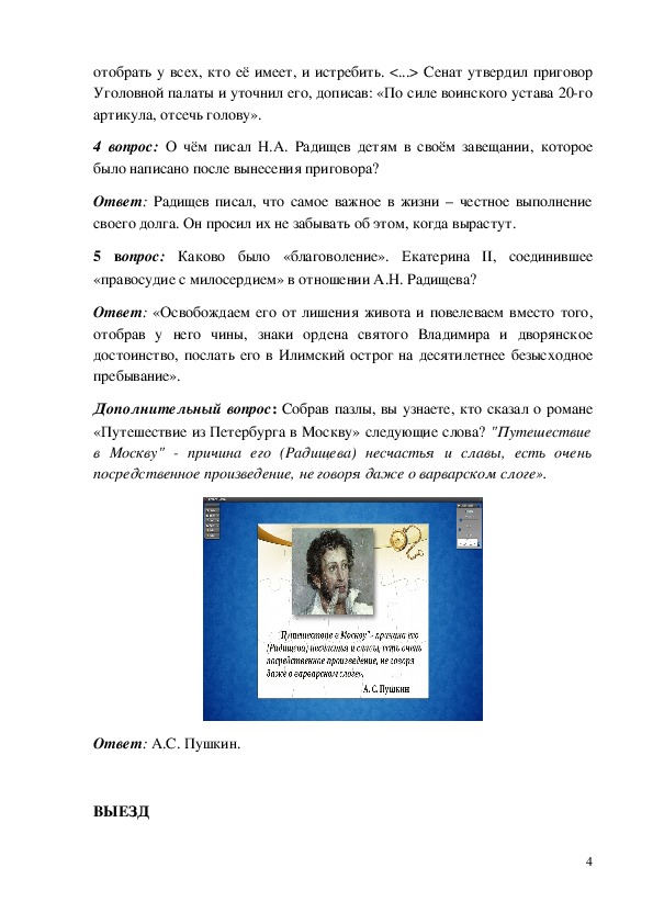 ПО РОМАНУ А.Н. РАДИЩЕВА «ПУТЕШЕСТВИЕ ИЗ ПЕТЕРБУРГА