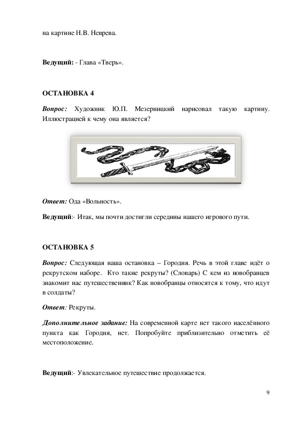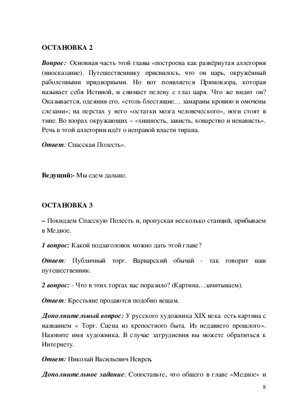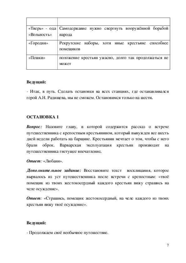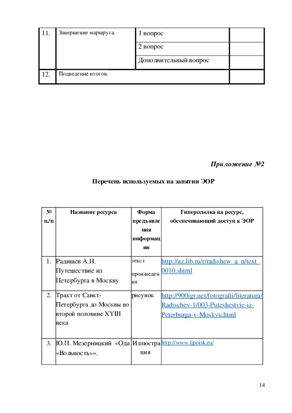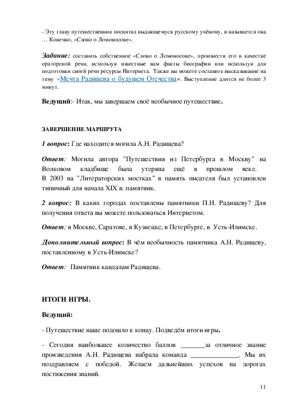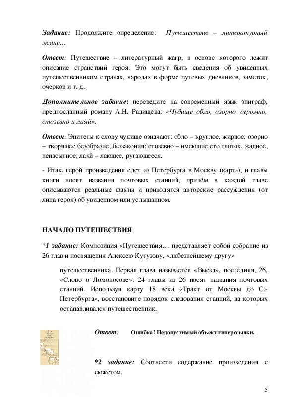 Петербурга в Москву», которое вы прочитали дома, или используя ресурсы