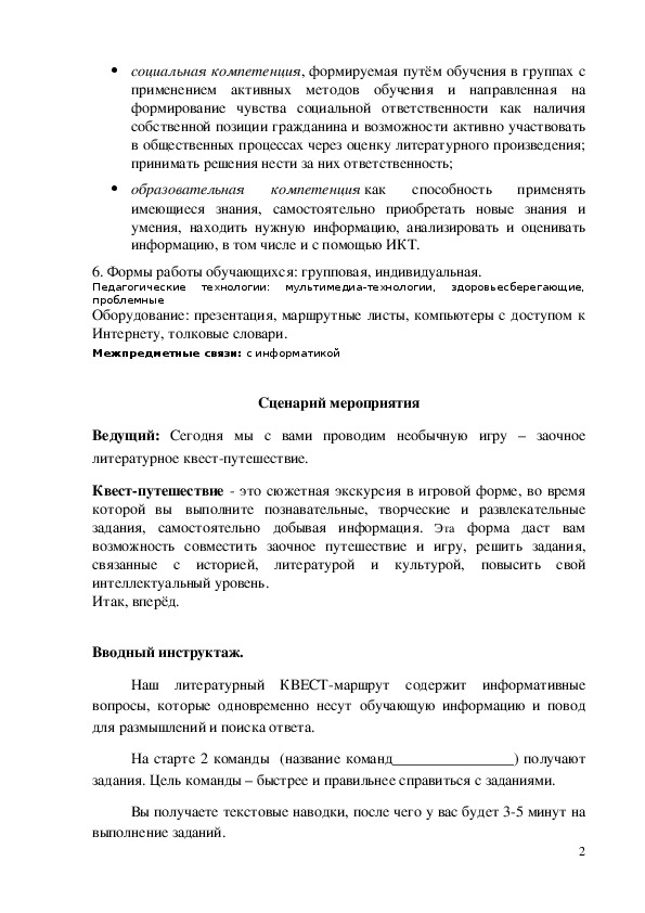 Квест-путешествие – новая форма изучения или закрепления материала- даёт возможность совместить путешествие и игру, решить задания, связанные с историей, литературой и культурой, повысить интеллектуальный уровень школьников.
