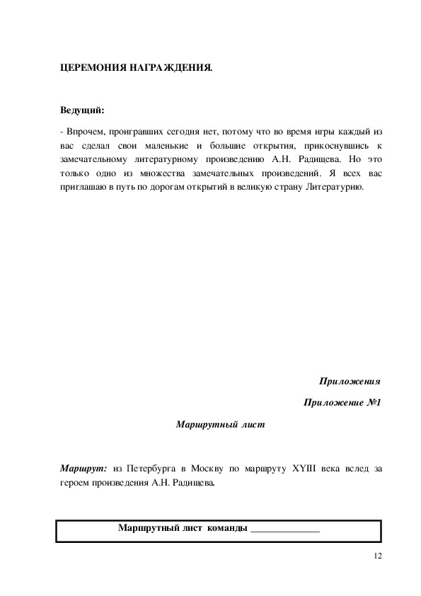 2В начале маршрута мы выдаём маршрутный лист (приложение 1), по