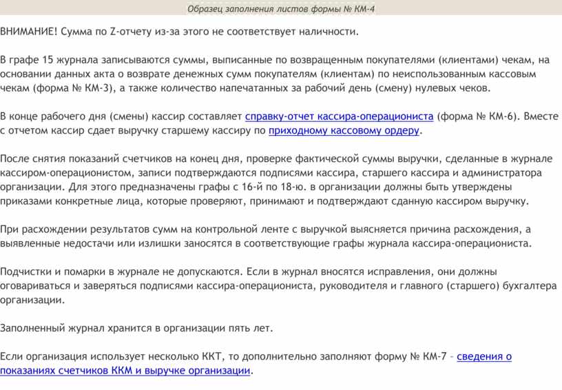 смену кассира-операциониста. Основанием для записи являются Z-отчеты, снятые с
