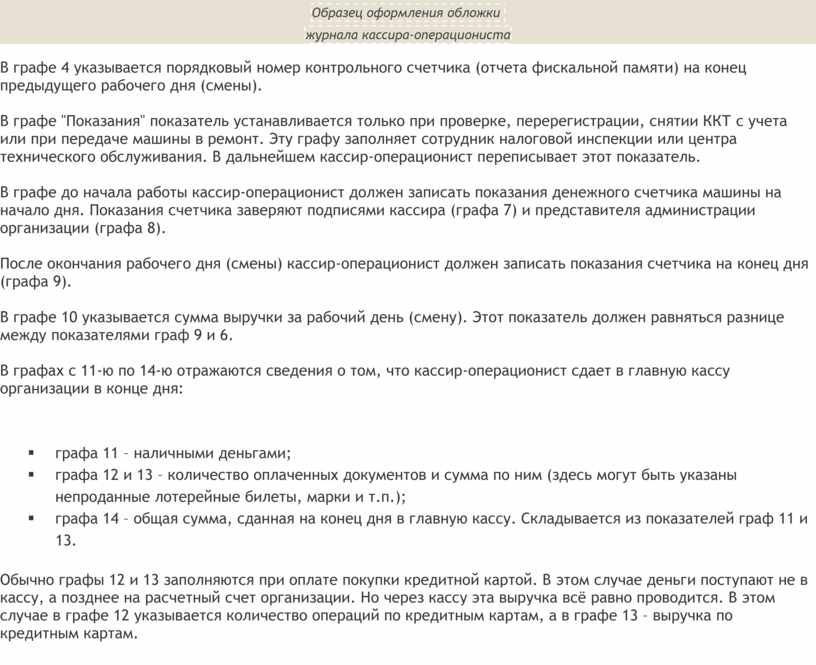 кассир-операционист в графах с 1-го по 3-го указывает дату (смену), номер