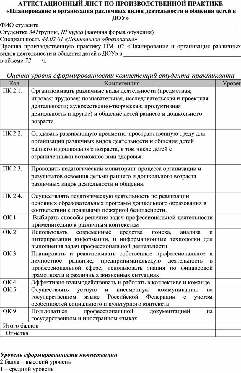 - Аттестационный лист