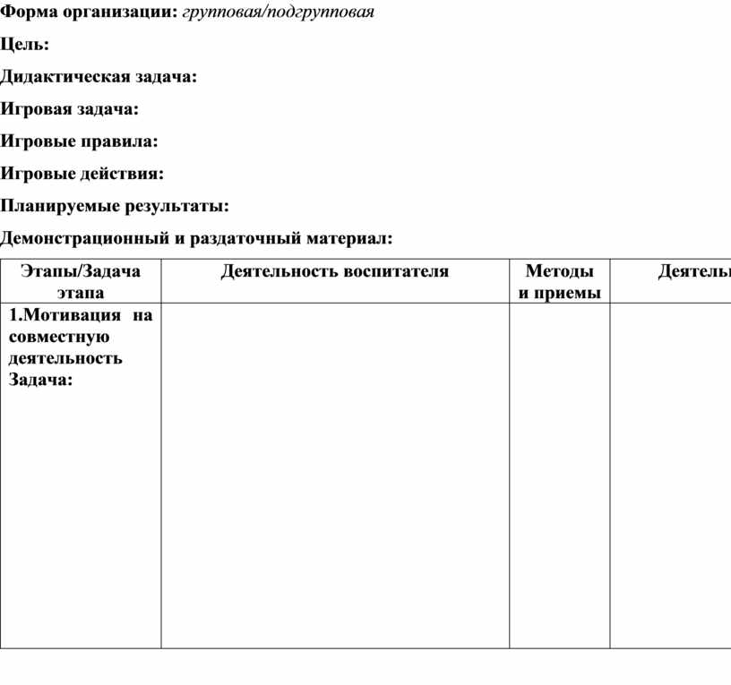 Форма организации: групповая/подгрупповая