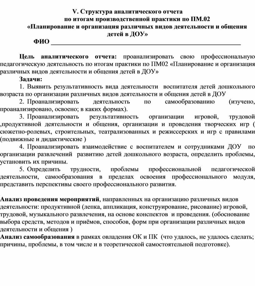 V. Структура аналитического отчета