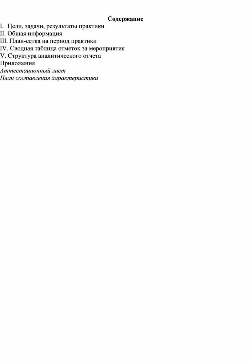 II. Цели, задачи, результаты практики