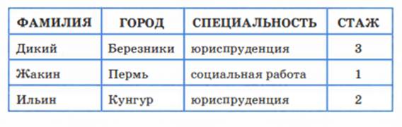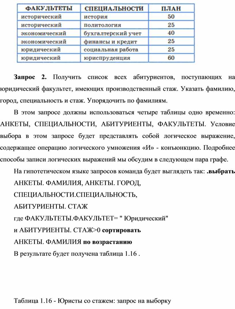 Таблица 1.16 - Юристы со стажем: запрос на выборку